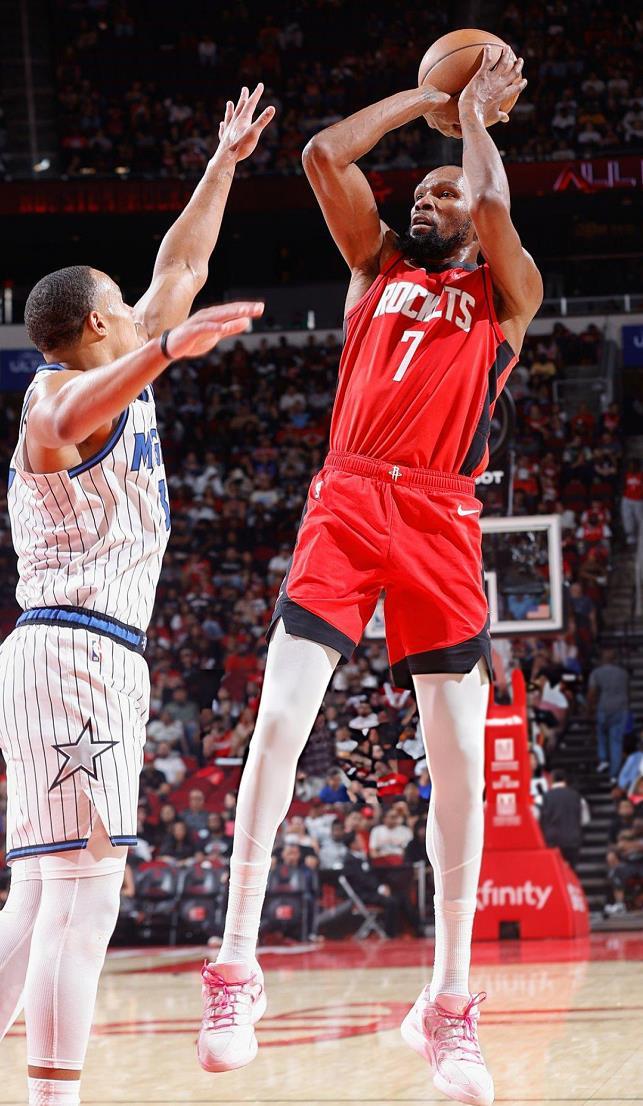 杜兰特的加盟让火箭多了一位阵地战超级得分点,比赛陷入困境只用将球交给他单打,就像今天第四节两个三分,加时赛关键中距离!与此同时KD的到来不仅仅盘活了火箭的进攻,而且没有动摇火箭的防守基本盘,本赛季的火箭防守效率高居联盟第9只要他们想,他们依旧能打出窒息的防守节奏。今天打魔术,当杜兰特弧顶面对小瓦格纳中投命中,正如火箭队记Lachard Binkley评论道:“如果有人在休赛期质疑为什么交易来37岁的凯文·杜兰特,这就是原因。他是终极终结者。”当然虽然本场比赛火箭逆转了魔术,但是这支球队还是暴露了许多问题,进攻端面对防守强队时还是没有太多办法,只能依靠球星个人单打解决问题,任重而道远,乌度卡还有很多事情要做!