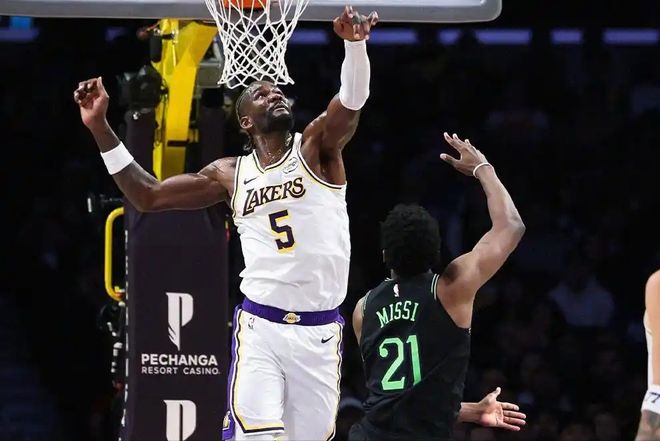 艾顿今天的表现,真的怎么赞美都不够,命中率超高,不占球权,脏活累活也愿意干,太好用了。面对鹈鹕内线组合,一个是首轮秀米西,去年的新秀二阵球员,蓝领中锋,身体条件非常好,但技术很糙,夏季联赛还被杨瀚森打爆过。鹈鹕另外一个中锋是鲁尼,正经三冠内线(2017、2018、2022),但如今的鲁尼,老态龙钟,完全顶不住艾顿了,今天还被艾顿隔扣了一个,里弗斯上篮不中,艾顿骑着鲁尼补扣得手。场边队友詹姆斯也愣住了,心想偷着乐:现在我队友怎么这么强啊!