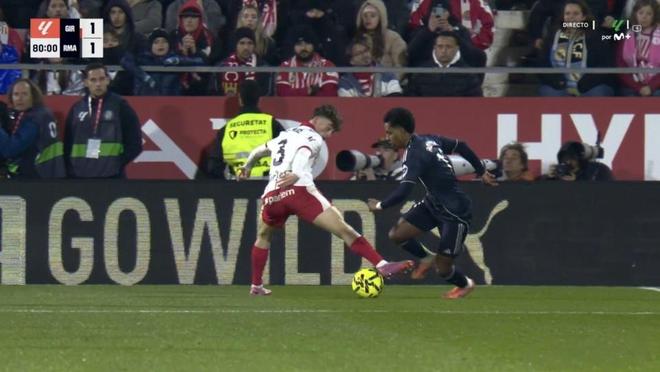 此役之前,皇马先后0-0战平巴列卡诺、2-2与埃尔切握手言和,2轮西甲联赛只拿到2分。此役面对身处降级区的赫罗纳,阿隆索的球队看到了赢球止跌的希望。比赛开始后,皇马在控球率和射门次数上占据了绝对上风,姆巴佩和维尼修斯都有不错的得分机会,可惜都未能把握住。第41分钟,姆巴佩捅射破门但手球在先被判无效。4分钟后,欧纳希劲射破门,赫罗纳半场1-0领先。