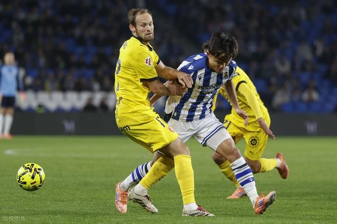 赫罗纳两年前赫罗纳是一匹大黑马,力压马竞拿到23-24赛季的第3,只不过小球会并无力多线作战,上个赛季他们直到最后才惊险保级成功。本赛季赫罗纳依然找不回黑马风采,上轮客场惨败后也是深陷降级区,今天客场对阵皇家社会,开场后赫罗纳和皇家社会展开对攻。第12分钟,皇家社会左路快速反击转移中路,日本梅西久保建英策应斜塞右侧,门德斯跟进禁区内小角度半转身大力扫射,加扎尼加奋力将球扑出。